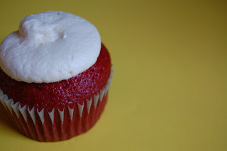 As an added bonus, I sat down while my cupcakes were in the oven only to find this Red Velvet cake comparison on The Way the Cookie Crumbles in my Google Reader. Bridget compared 4 red velvet cupcake recipes, including Kelsey’s from Apple A Day, Deb’s from Smitten Kitchen, and two others. I was very interested in her results since I had chosen the Apple a Day recipe and Amy had made the Smitten Kitchen recipe. If you’re looking for a Red Velvet cupcake recipe, definitely check out the comparison post. I am proud to say that Bridget recommends the Apple A Day recipe that I chose for my cupcakes! I agree that they come together easily, are very moist due to the oil in the recipe, have a bright red color, and have a sweet but tangy flavor.