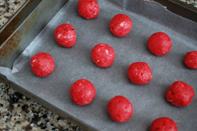 I threw the rest of the cake straight into my mixer and gave it a whirl. Then I made cake balls just like many of us have done many times in the past. I froze the cake/cheesecake/frosting balls for a while before dipping them in some chocolate. I added the red swirl just for fun using a candy melts pen.