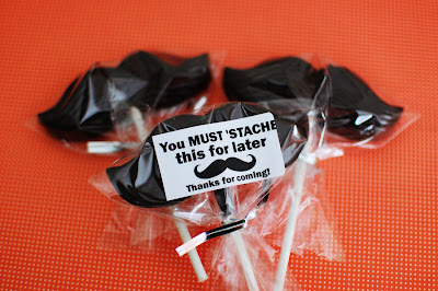 I also ordered these mustache lollipop molds. I had high hopes of tempering chocolate and making them myself, but things got crazy leading up to the party. My friend Shannon, who works well with chocolate ended up making them for me and they were amazing. She used Trader Joe’s dark chocolate to make them. I made the little stickers to put on the back of the baggies.